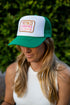 "Kelly" Green/white hat with a heat press patch.