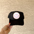 Black hat with a heat press patch.