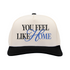 The original TTL "You Feel Like Home" graphic, embroidered on a Cotton twill canvas trucker hat.